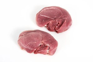 Thick flank muscle removed from a leg and chump of pork, cut into steaks.