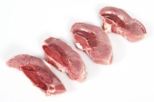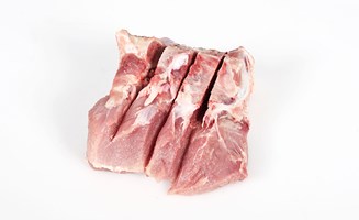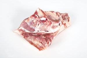 Full bone-in rump removed from a leg and chump of pork, cut/sawn into steaks.