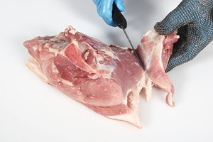 Remove the small group of muscles which lie under the tail bone as illustrated.